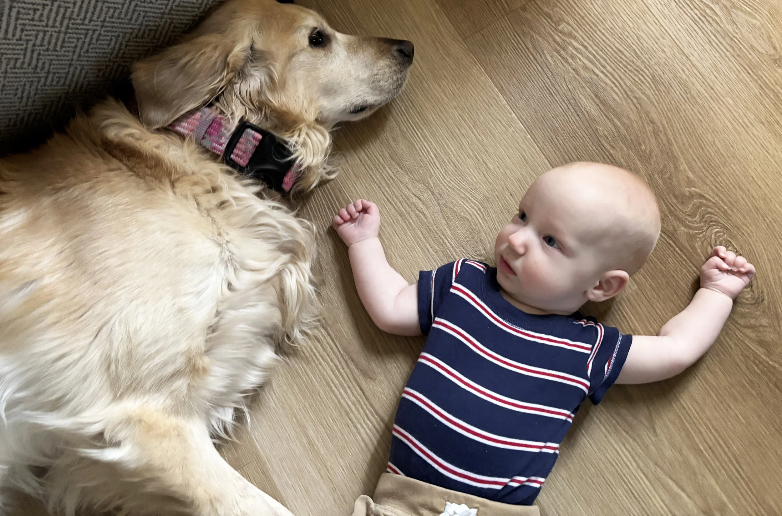 Misha and Emmett laying on the ground