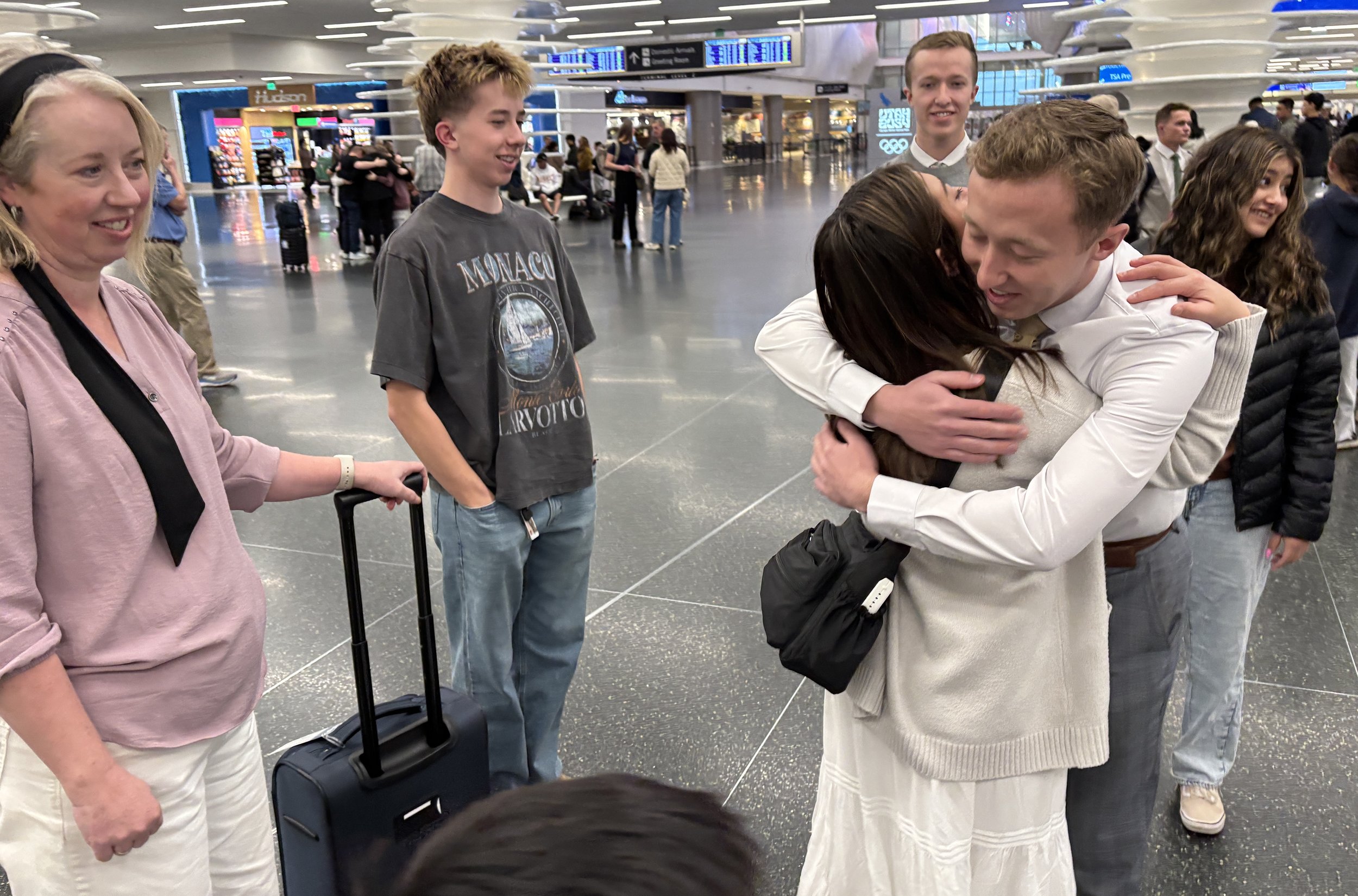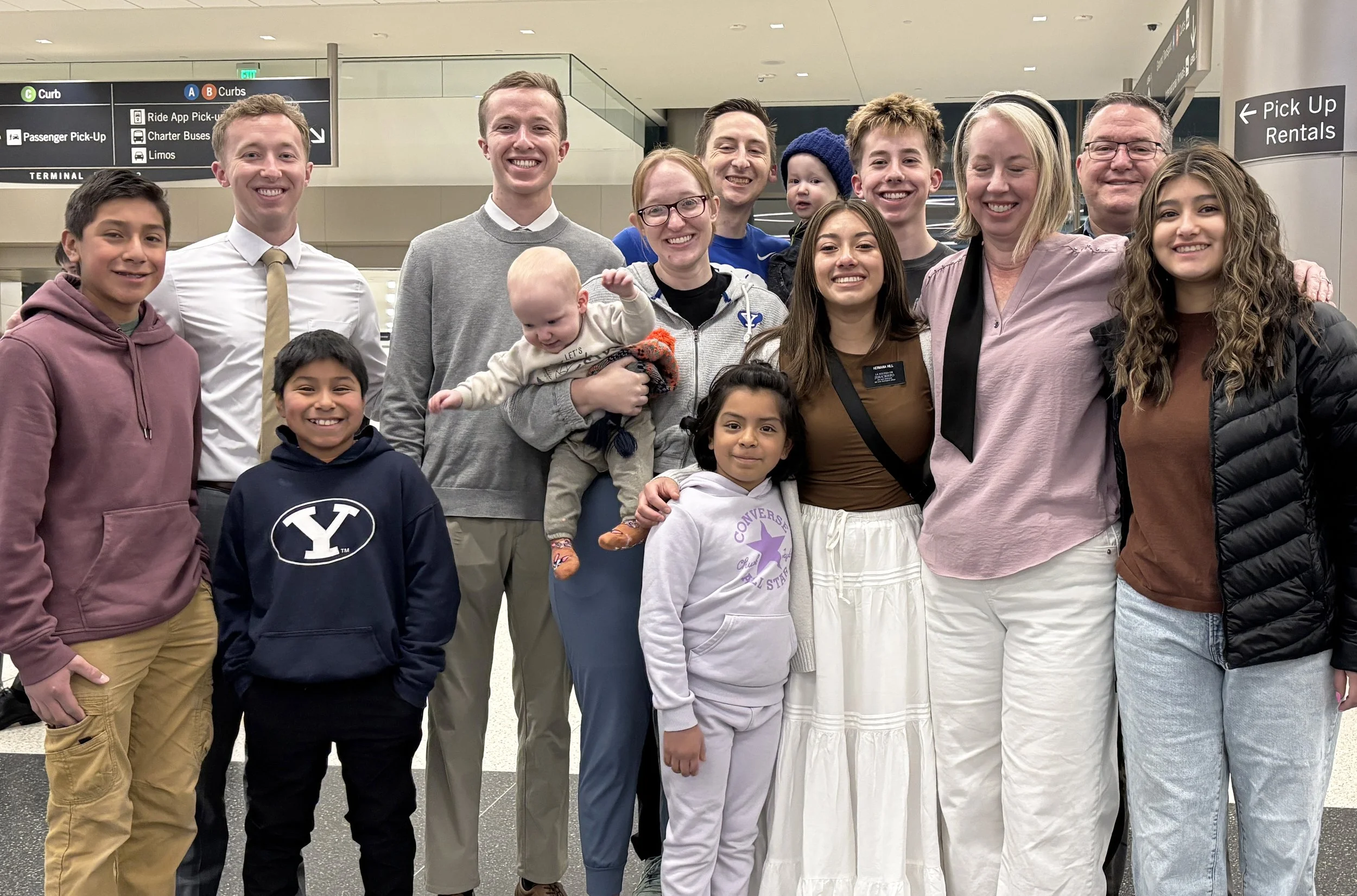 Family at airport with Gloria