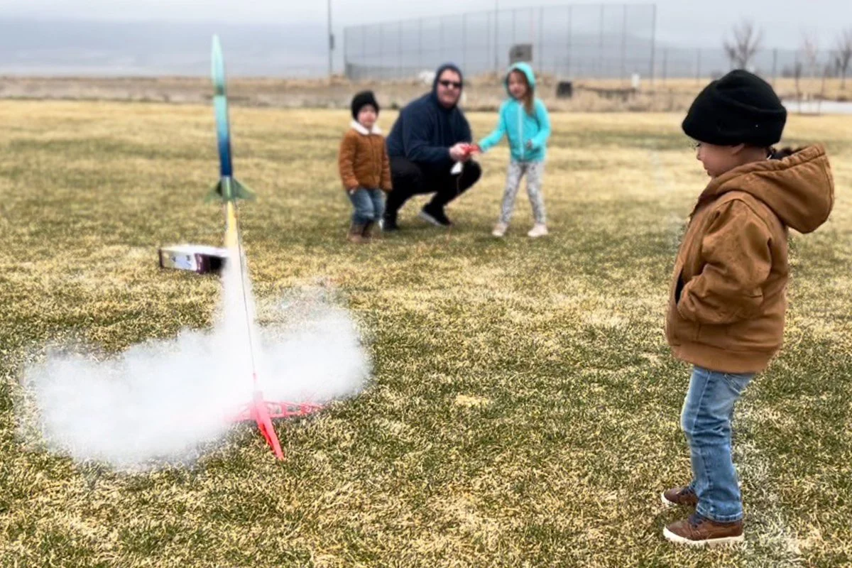 Nate launching rockets with children