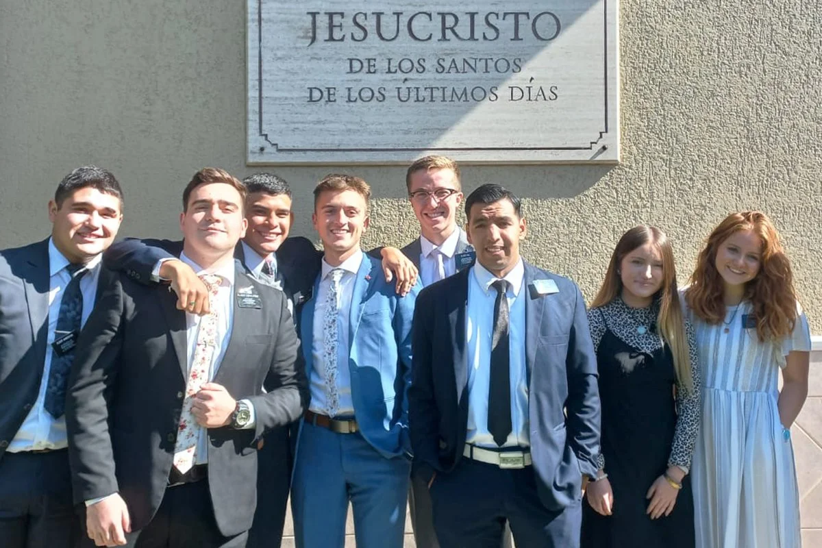 Caleb with a group of missionaries