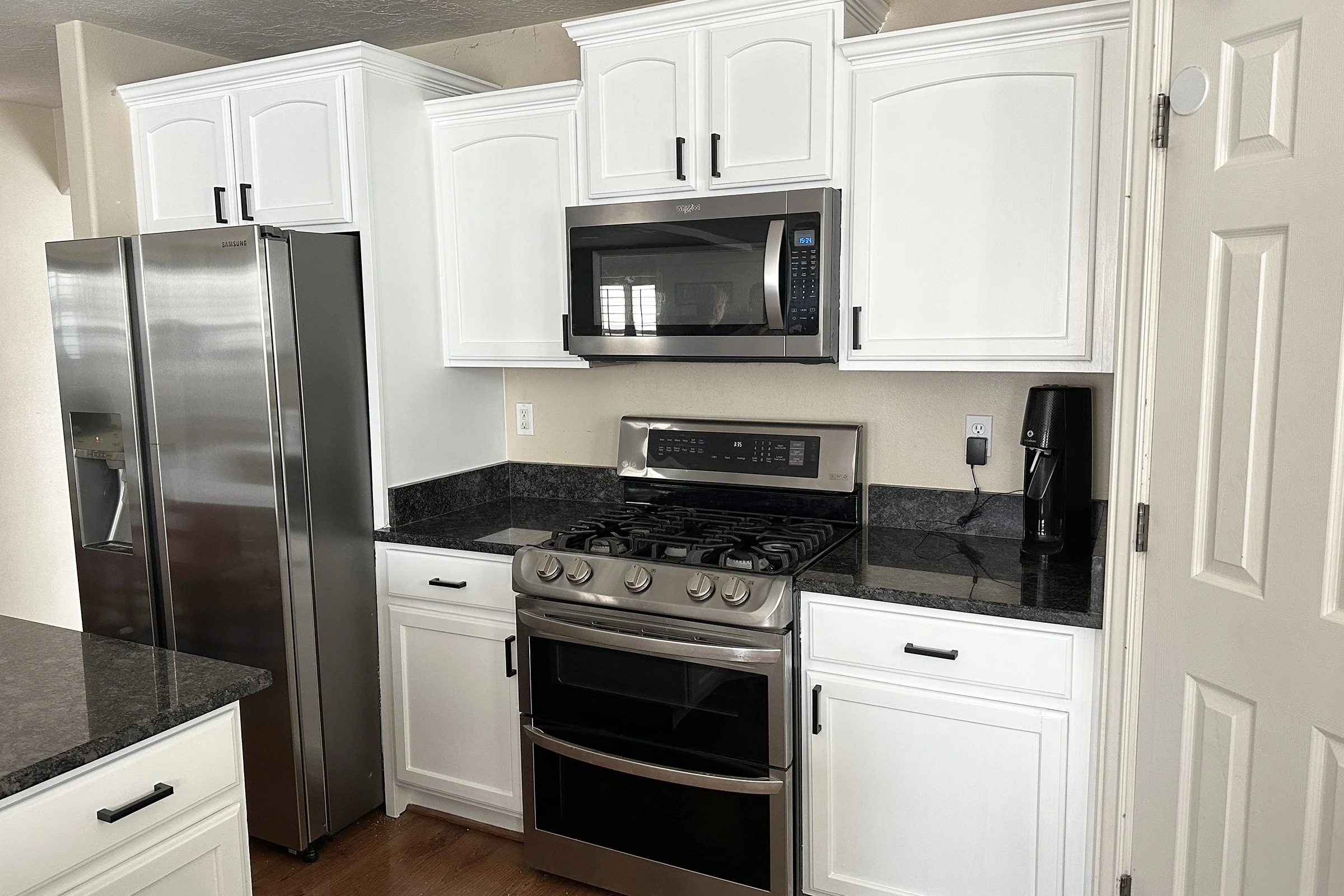 All of this inspired us to do more projects around the house, so over the next few days we re-painted all of the kitchen cabinets. The whole family was involved with that project, and it turned out amazing! I really enjoyed being able to paint and to brighten up the kitchen!