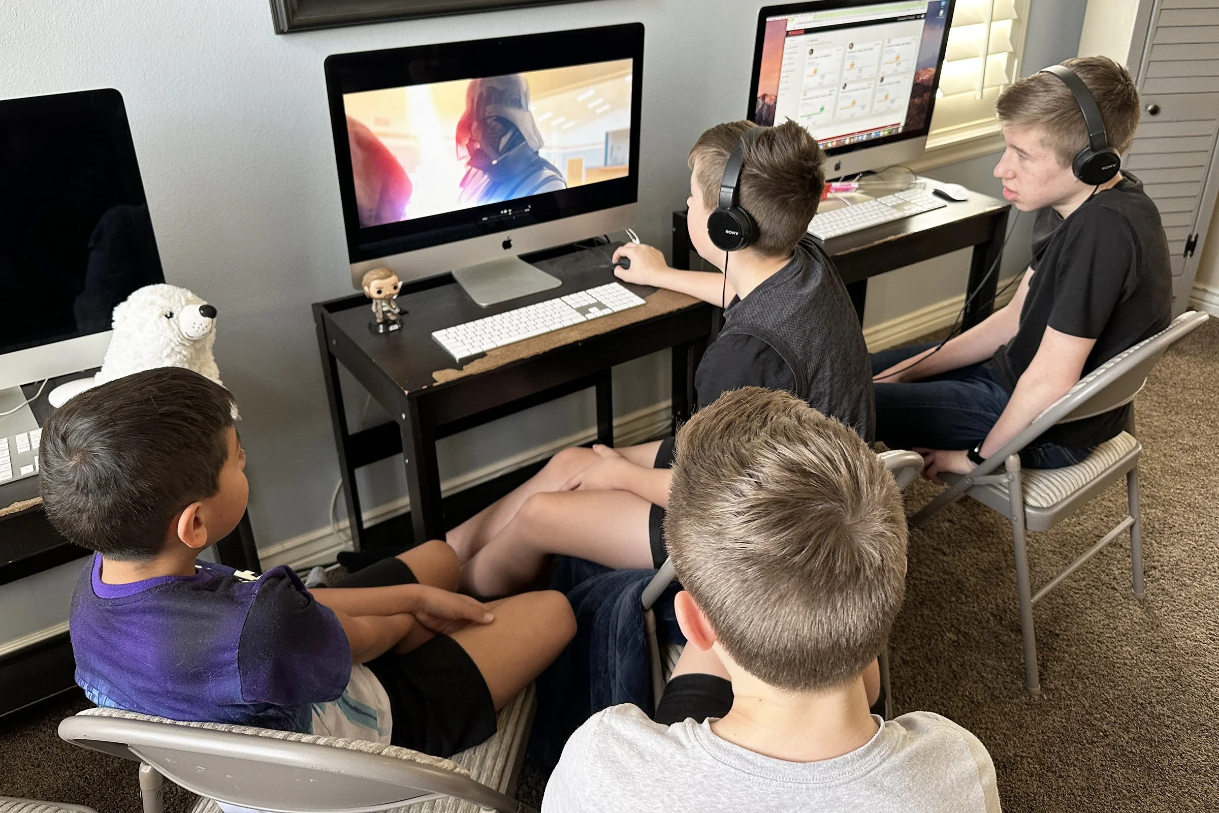 The next day Isaac and Monte showed Braden the short movie clip that they made. It was Obi-Wan vs. Darth Vader and they made it from footage they shot at the church, and lots of special effects. It was really cool!