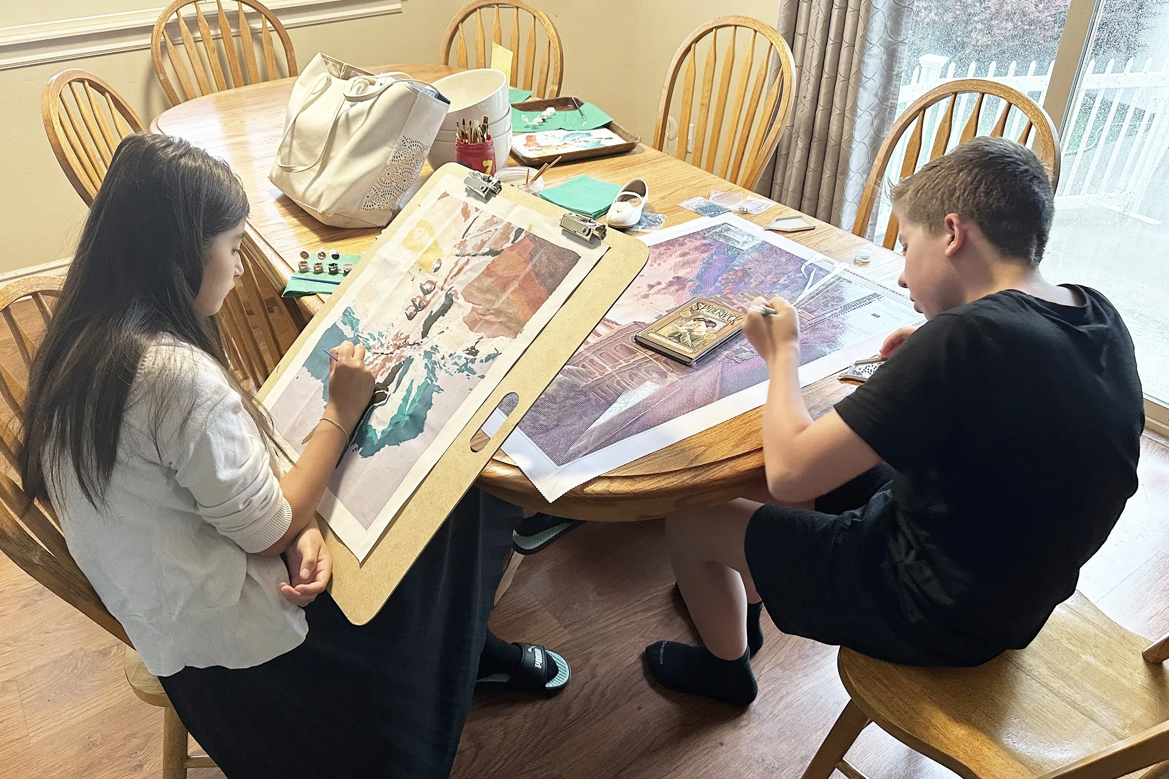 Veidi and Isaac working on craft projects