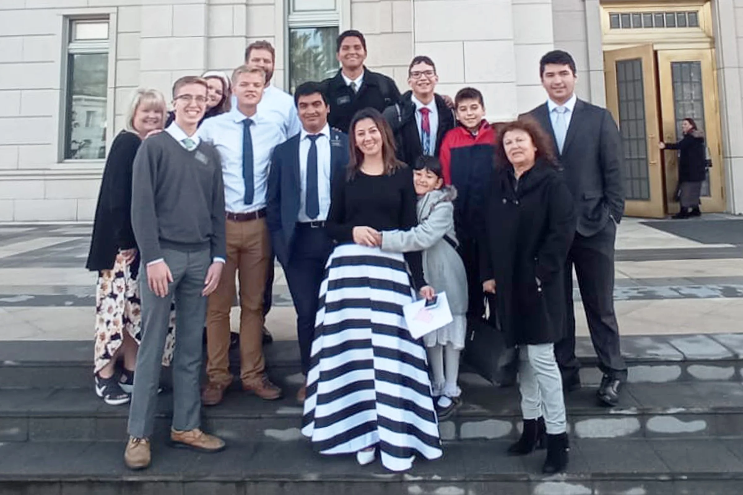 Caleb with group at the temple