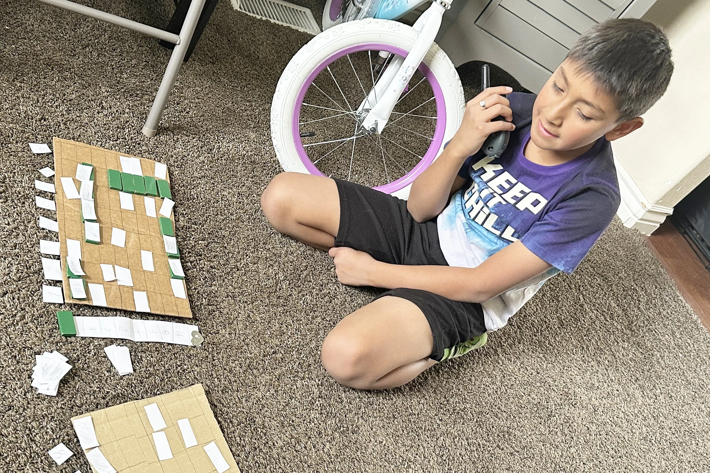 Kai playing homemade battleship