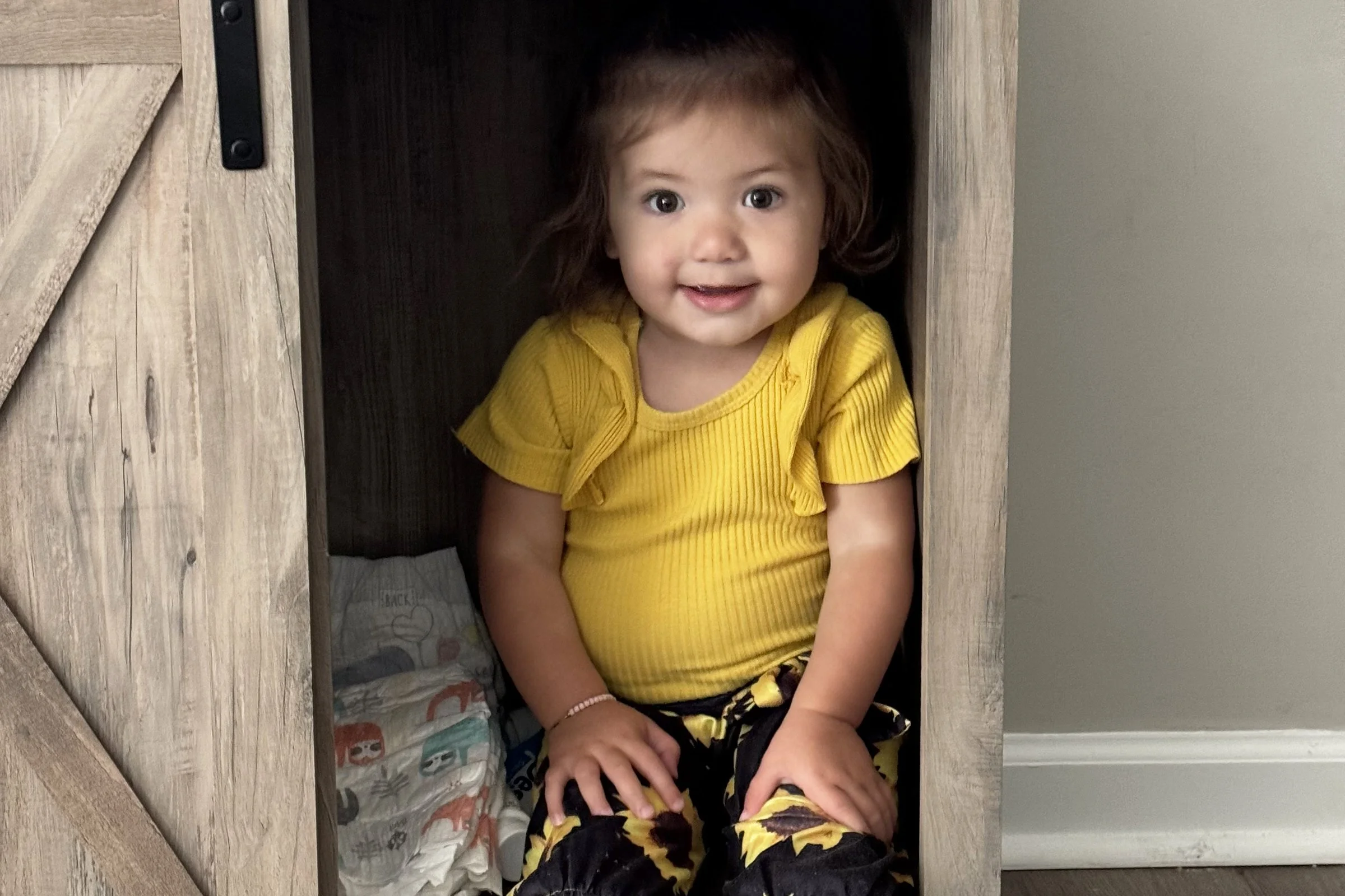 Charlie hiding in a cupboard