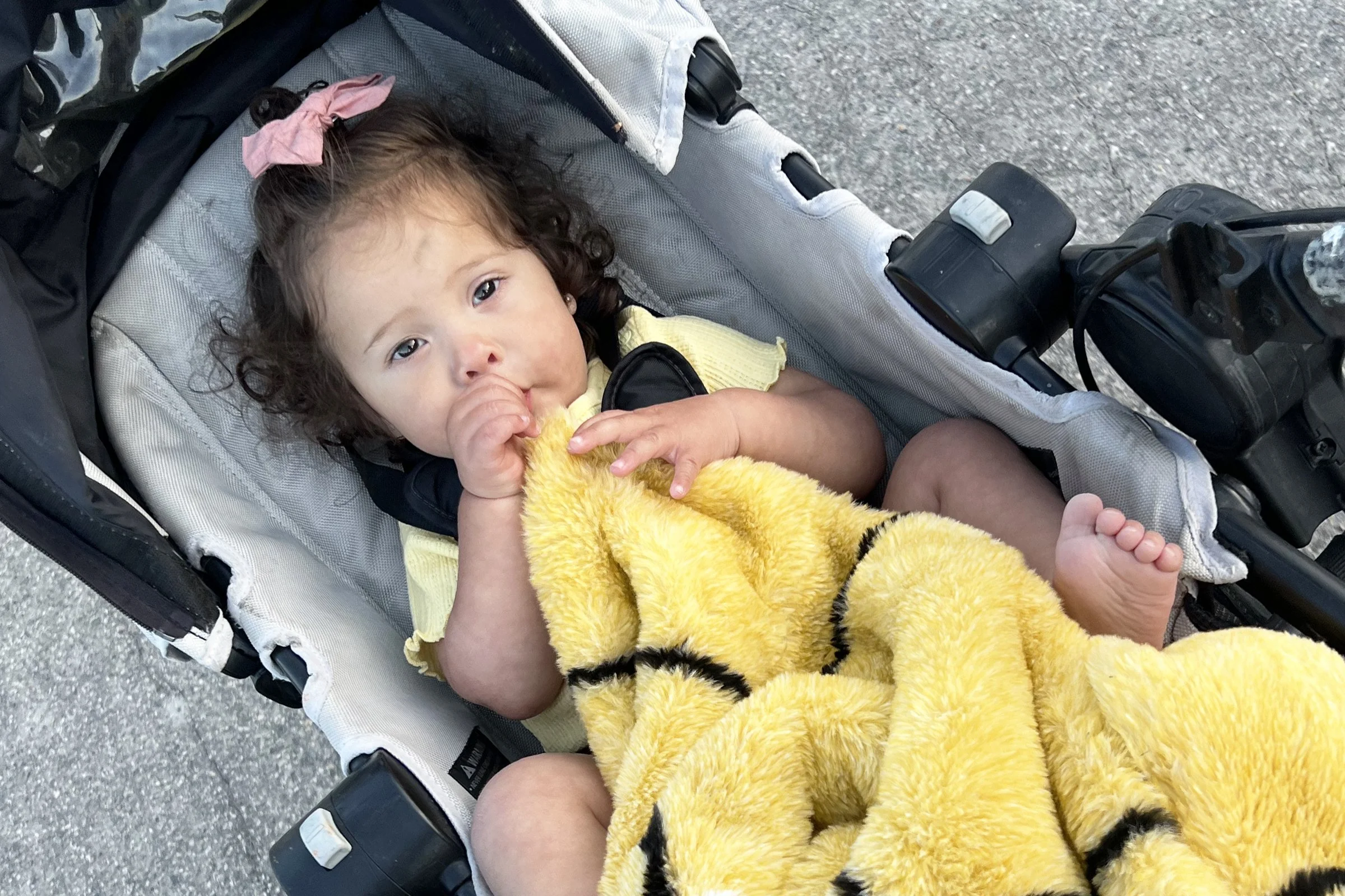 She’s also got a thing for stuffed animals and blankets. As soon as she has one she puts her thumb in her mouth!