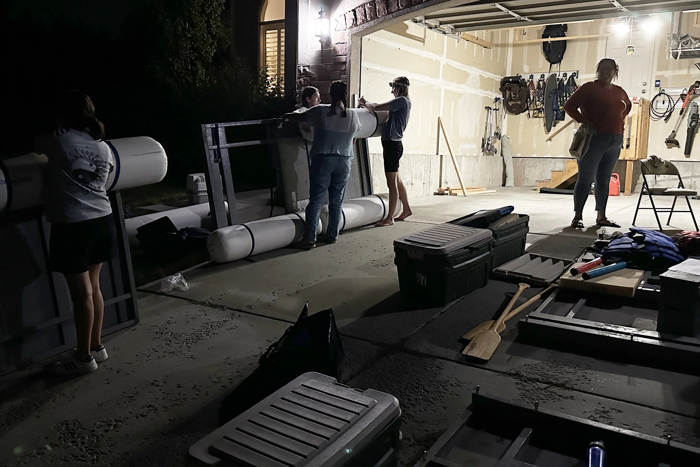 On the other side of things, I was on a raft with Isaac, and I was pushing our raft through some shallow water, and when I went to get back on the raft, the raft rotated, causing it to come in behind me.