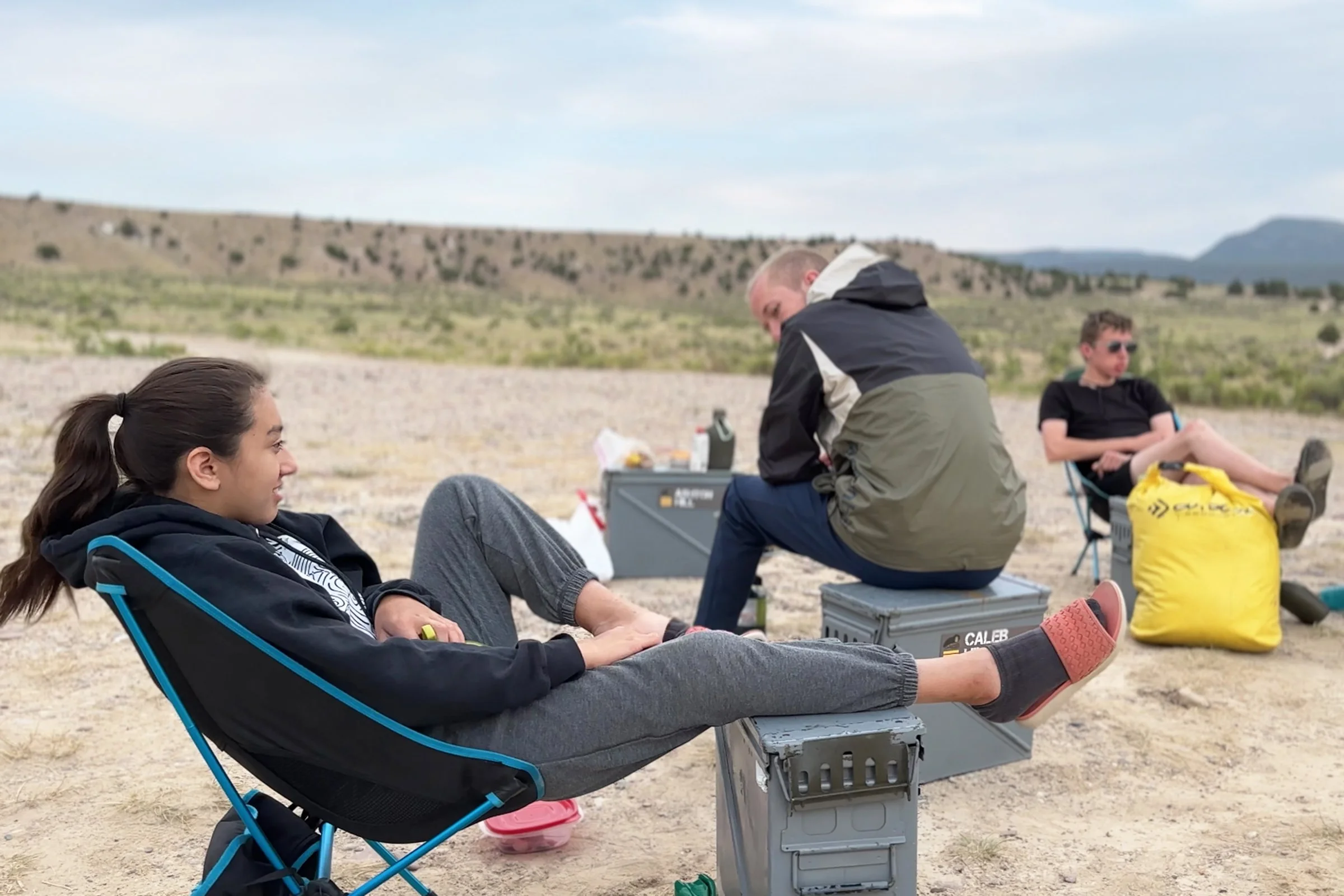 She loves to tell the story of my panic when I thought all our metal ammo cans—in a circle right outside the tent—might draw lightening right to us. So I woke everyone up and sent them outside.