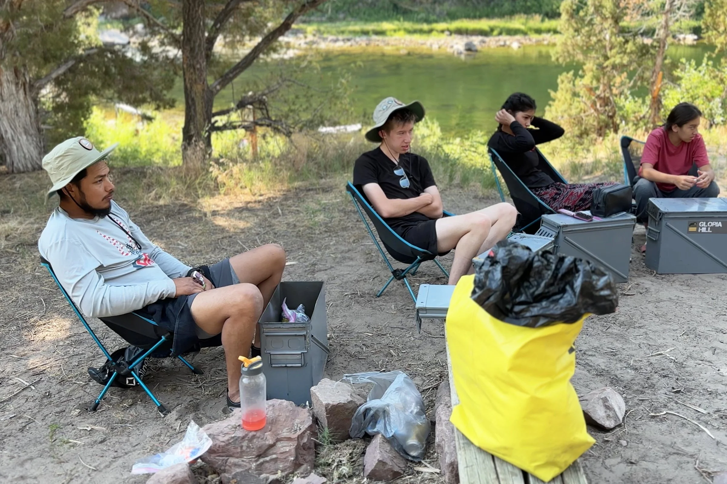 The first night, we got to camp unpacked the rafts, and set up camp. Then we had dinner. Afterwards, Jen, me, and Gloria played Uno. It was fun. Then we got tired and got ready for bed. We talked for a little while and then went to sleep.
