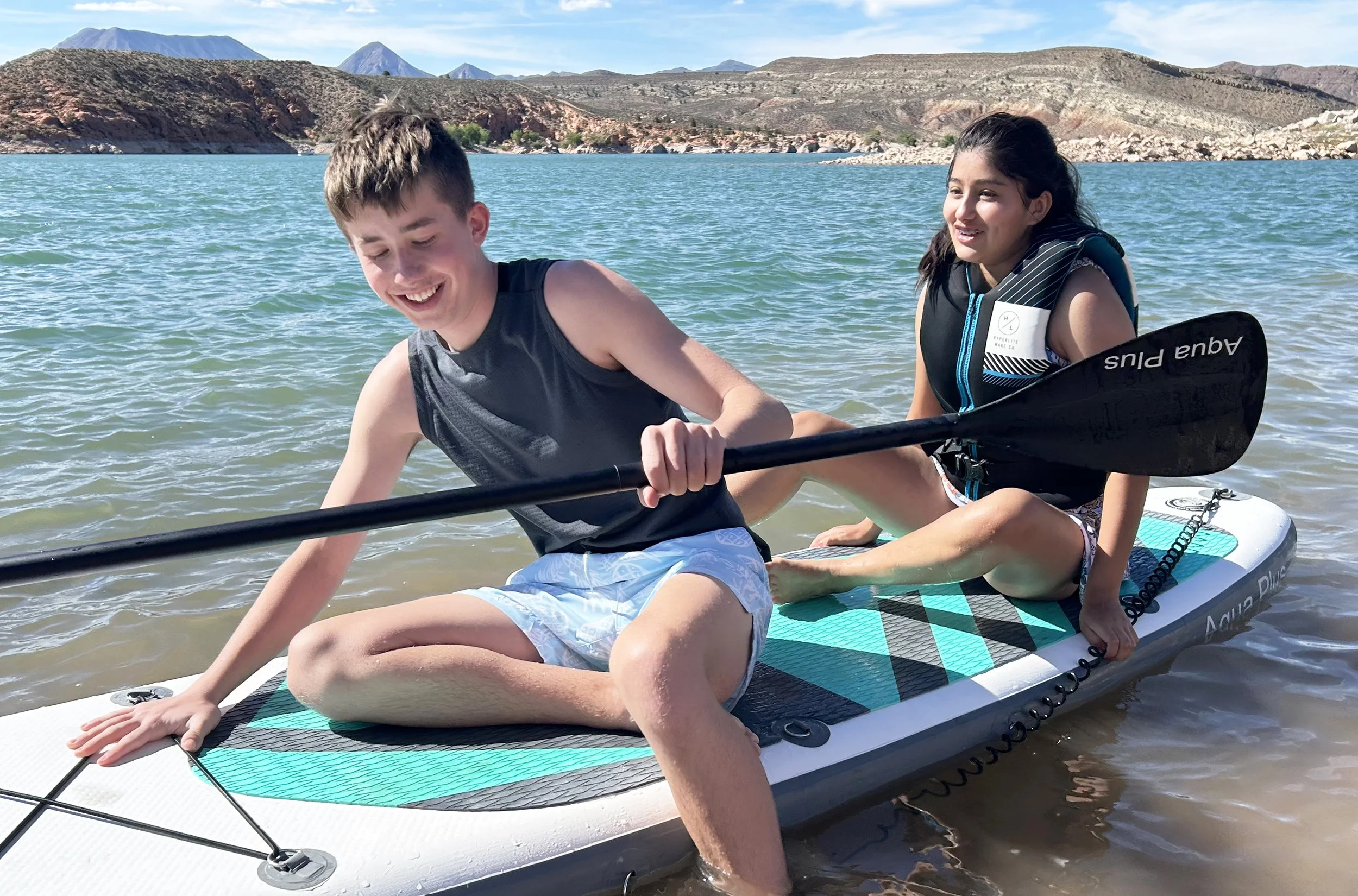 We were going to St. George, and I was so excited. When we got there, we had so much fun. There was a foosball table, and I slept on a bunk bed.