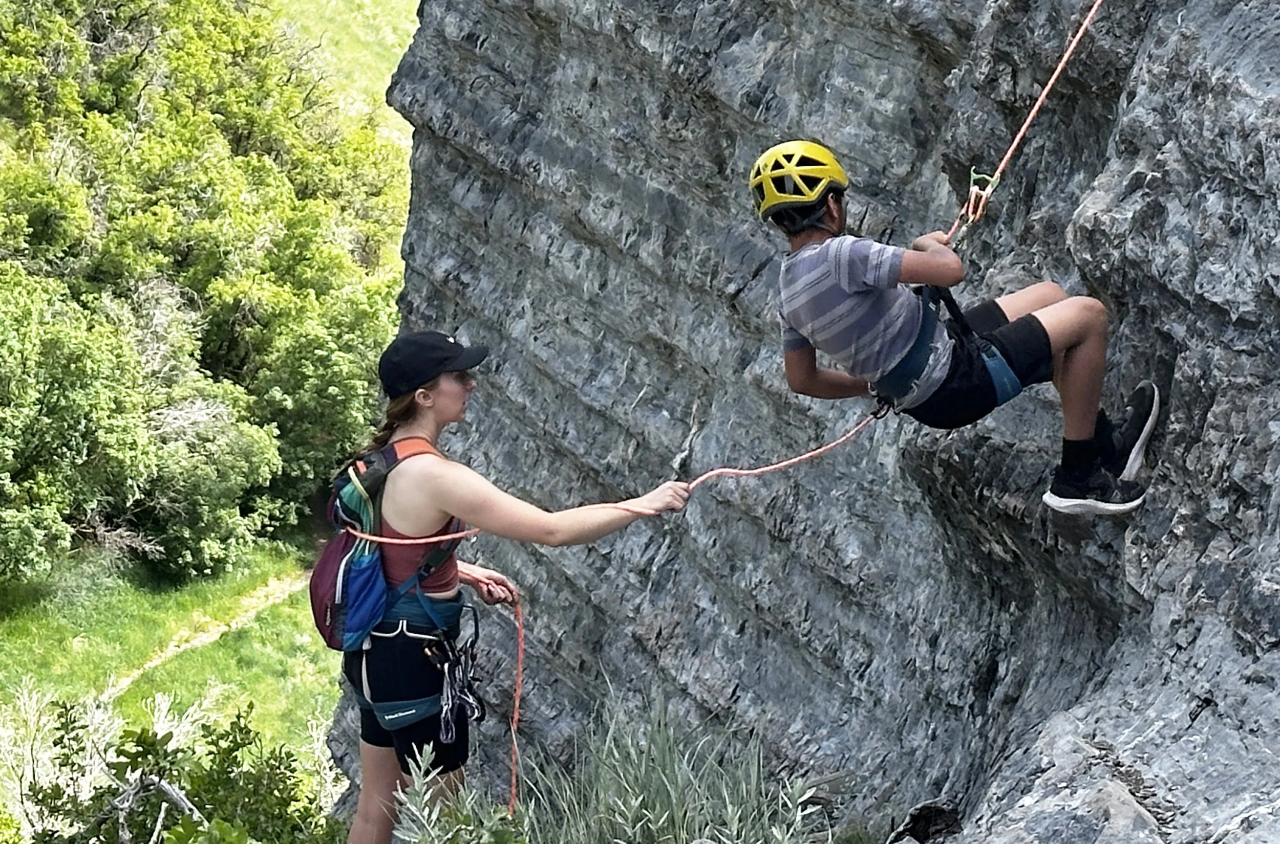 This week I went rappelling with London, Keaton, Kai, Mom, and Caleb. We went to Lindon, and when we got there, we met up with London and Keaton and started to climb up some cliffs. The hike wasn't hard, but the scenery was beautiful.
